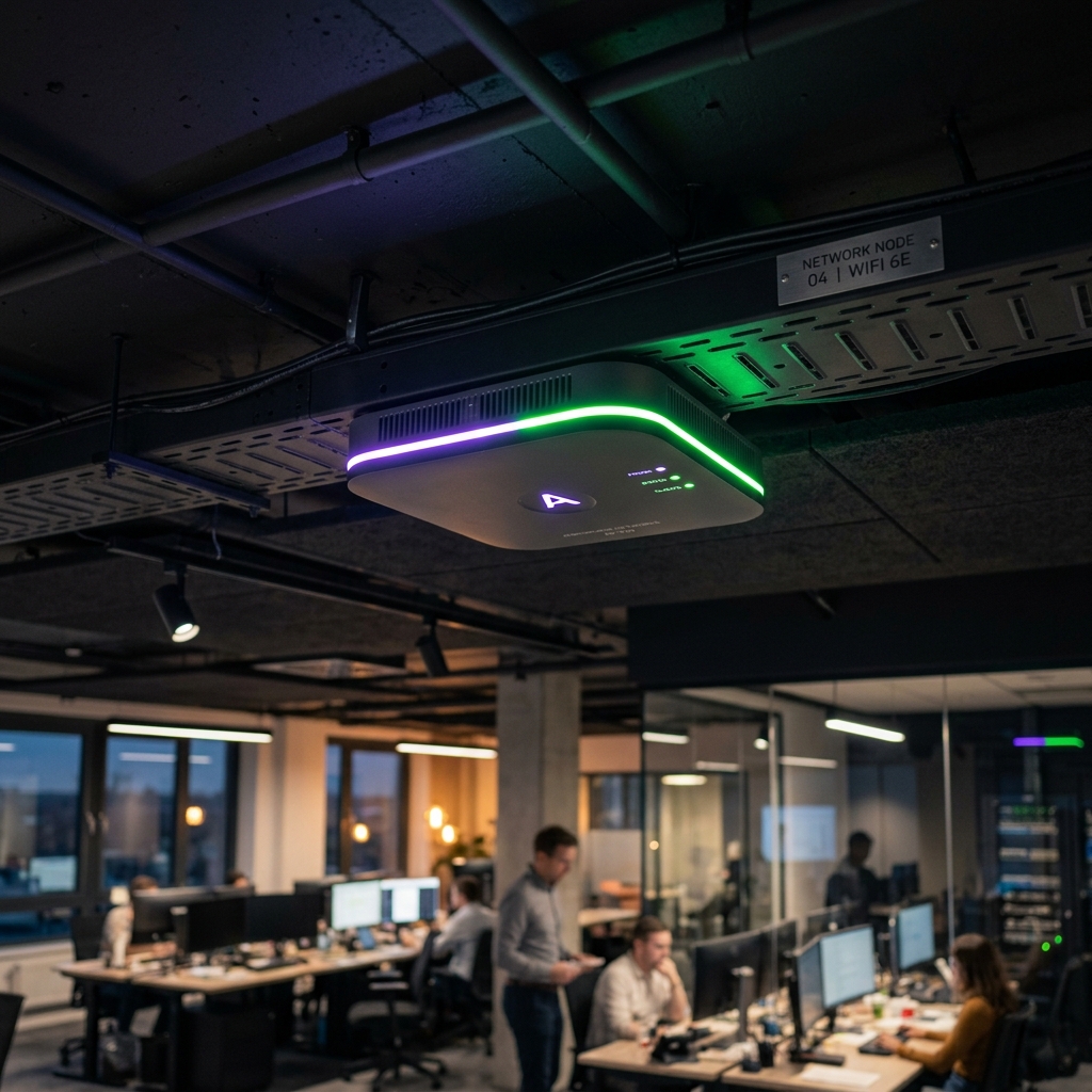Proveemos entornos inalámbricos limpios: Access Points (APs) corporativos solapados que permiten "roaming" real. Puedes caminar por toda la oficina en una videollamada sin que se caiga la conexión al pasar de un punto a otro.